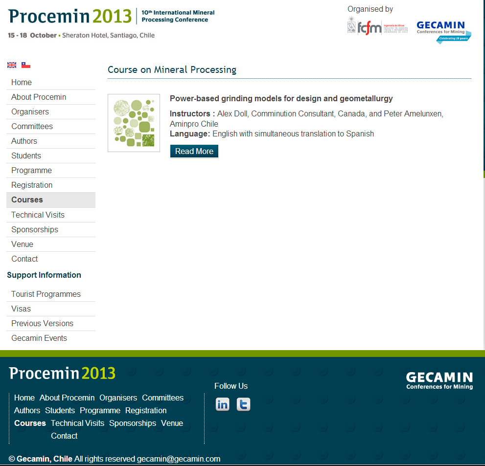 Make sure you register for the course being run by Alex Doll, Comminution Consultant, Canada, and Peter Amelunxen, Aminpro Chile.
